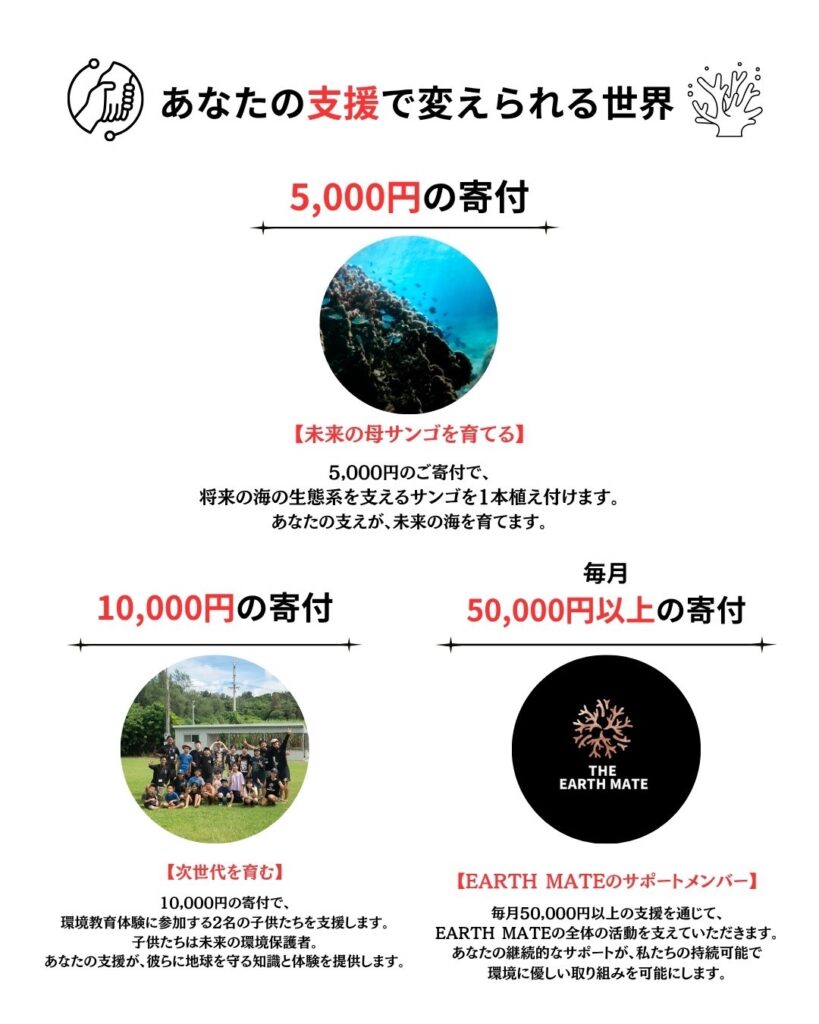 現在、アースメイトではさまざまな環境活動を行っています。しかし、私たちの資金には限りがあり、活動の規模をさらに拡大することが難しいのが現状です。皆さんの温かい寄付をいただけることで、私たちの活動を強化し、より多くの人々に地球の大切さを伝え、守る力を広げていきたいと考えています。あなたの支援が、地球を守る未来へとつながります。どうぞご協力をお願い申し上げます。